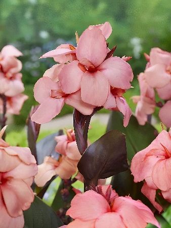 Канна Шайнинг Пич (Shining Peach) — это компактный сорт гибридной канны, отличающийся нежной окраской и декоративной листвой.