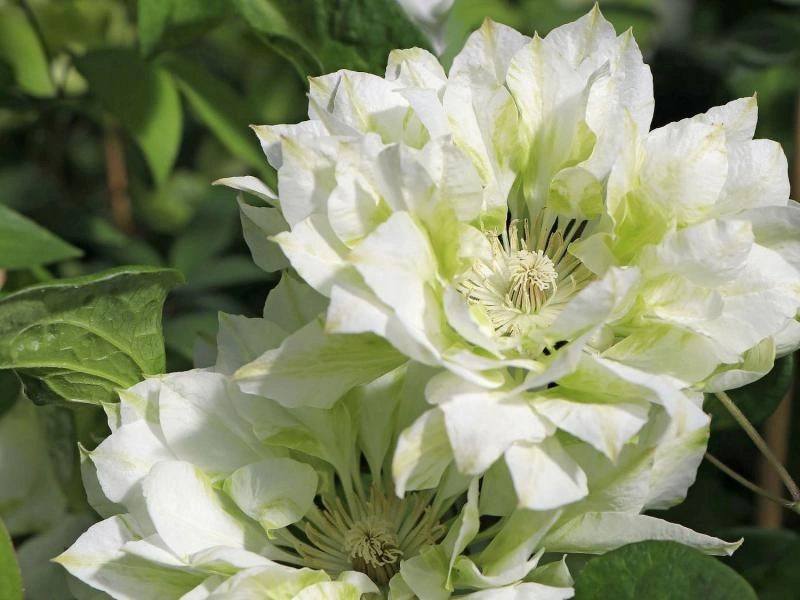 Клематис Юкиокоши - кустарниковая лиана. Группа обрезки слабая (2). Лиана очень гибкая, побеги черешками своих листочков довольно прочно цепляются за любую опору. Растение высокое, достигает 2,5 метров. Собранные из белых лепестков с зеленой полоской цветки довольно крупные, достигают 12-15 сантиметров в диаметре. Они махровые, в виде чаши, сформированной просто огромным количеством чашелистиков, которых может насчитываться от 30 до 50. При этом каждый лепесток перекручен в разные стороны, но так живописно и беспорядочно, что это может сделать только природа. Цветущие в два срока: в начале лета - на прошлогодних побегах, в конце - на побегах нынешнего года. Требует регулярного полива, подкормки; опоры для правильного роста. Клематис характеризуется высокой зимостойкостью, однако нуждается в дополнительном укрытии на зиму. Подходит для посадки у ограждений, стен, беседок, решёток, небольшим деревьям и кустарникам. Особенно хорош для выращивания в больших контейнерах на балконах и террасах.