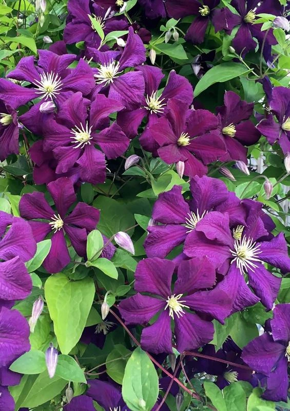 Клематис Этуаль Виолетт — крупный обильноцветущий сорт. Этот сорт принадлежит к группе обрезки 3 (сильная). Вьющаяся лиана в высоту вытягивается до 3,5 м, цепляясь за опору черешками листьев. Ярко-зеленая листва имеет тройчатое строение, по форме листочки слегка удлиненные. Цветки простые тёмно-фиолетовые среднего размера, 4–6 заострённых, отогнутых лепестков, тычинки кремово-жёлтые. Диаметр цветков 8-9 см. Цветёт обильно в июне–сентябре. Требует регулярного полива, подкормки; опоры для правильного роста. Клематис характеризуется высокой зимостойкостью, однако нуждается в дополнительном укрытии на зиму. Подходит для посадки у ограждений, стен, беседок, решёток, небольшим деревьям и кустарникам. Особенно хорош для выращивания в больших контейнерах на балконах и террасах.