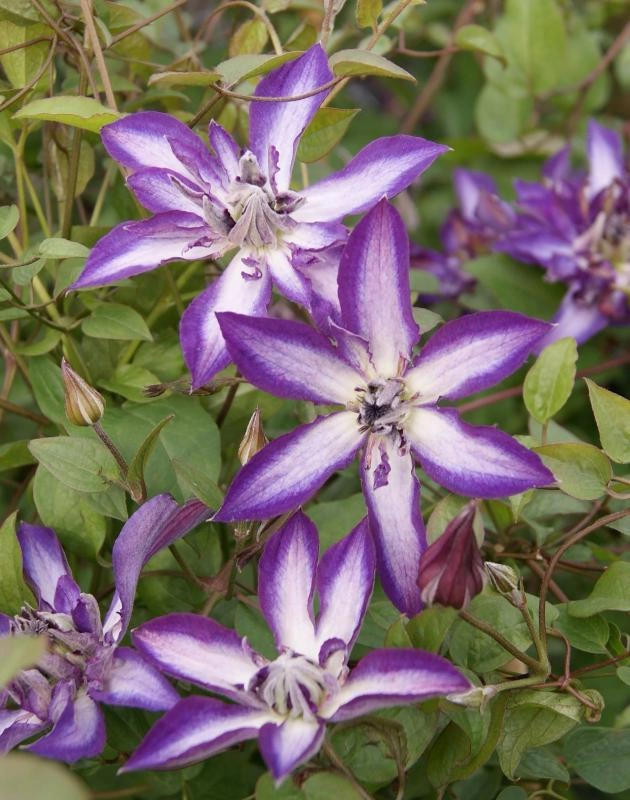 Клематис Астра Нова — эффектное многолетнее растение. Этот сорт принадлежит к группе обрезки 3 (сильная). Высота растения достигает 2,5 м, диаметр куста может составлять 0,6 м. Стебли вьющиеся. Листья имеют насыщенный зелёный тон. Цветки крупные (8-9 см) появляются в конце июня и радуют глаз до сентября. Немахровые волнистые лепестки имеют интересный окрас: фиолетовые края выразительно оттеняются широкими белоснежными полосами в центре. Тычинки цветов светлые, пыльники коричневые. Цветут только молодые побеги, сформированные на второй год жизни. С этим связана необходимость осенней обрезки. Требует регулярного полива, подкормки; опоры для правильного роста. Клематис характеризуется высокой зимостойкостью, однако нуждается в дополнительном укрытии на зиму.