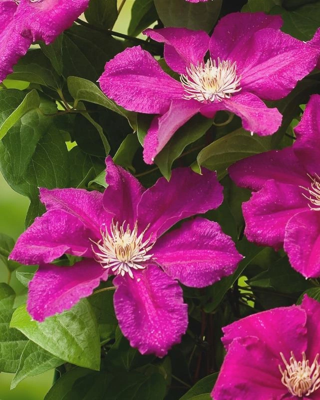 Клематис Эрнест Маркхе— вьющаяся многолетняя лиана. Этот сорт принадлежит к группе обрезки 3 (сильная). Может достигать 3,5 м и разрастаться в ширину до 1,5 м. Листья удлиненные, остроконечные, тройчатые, с волнистыми краями, зеленого цвета. Цветки из 5–6 бархатистых лепестков, 12-15 см в диаметре, с кремово–коричневыми тычинками. Лепестки заостренные, продолговатые, с волнистым краем, могут быть пурпурно-красного, красно–бордового или яркого–красного цвета. Период цветения июнь-сентябрь. Требует регулярного полива, подкормки; опоры для правильного роста. Клематис характеризуется высокой зимостойкостью, однако нуждается в дополнительном укрытии на зиму. Подходит для посадки у ограждений, стен, беседок, решёток, небольшим деревьям и кустарникам. Особенно хорош для выращивания в больших контейнерах на балконах и террасах.