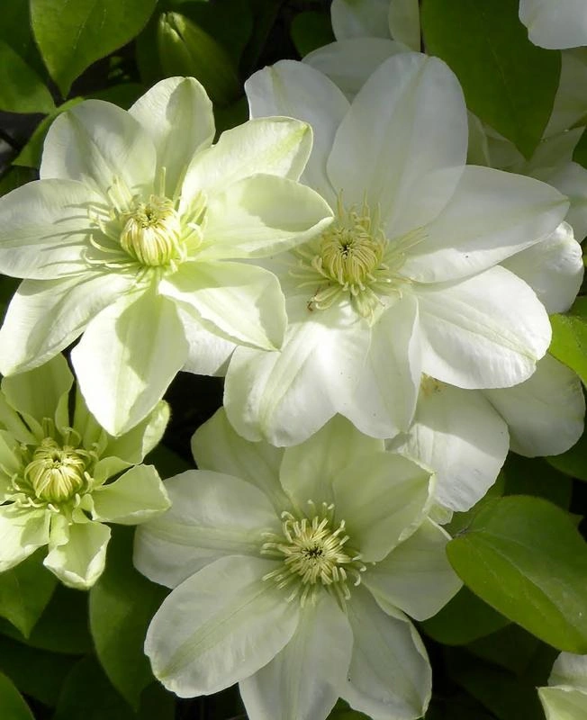 Клематис Джернси Крим — умереннорастущий сорт. Этот сорт принадлежит к группе обрезки 2 (слабая). Побеги вырастают 2-2,5 м., утончённые, изящные, стебель вьющийся. Листья зтройчатые, имеют цельную структуру, немного морщинистые, глянцевые, с выращенными продольными прожилками, зеленого цвета. Диаметр каждого около 12-15 см, форма открытая, лепестков с вывернутыми краями от 6 до 8 шт. Цветки немахровые, окраска светло-жёлтая, присутствует полоса зеленоватого тона, при распускании становится белая, тычинки желтоватые. Цветение происходит в два этапа: первый — в мае-июне, второй — с августа по сентябрь. Первое цветение происходит на прошлогодних побегах, второе — на побегах текущего года. Требует регулярного полива, подкормки; опоры для правильного роста. Клематис характеризуется высокой зимостойкостью, однако нуждается в дополнительном укрытии на зиму. Подходит для посадки у ограждений, стен, беседок, решёток, небольшим деревьям и кустарникам.