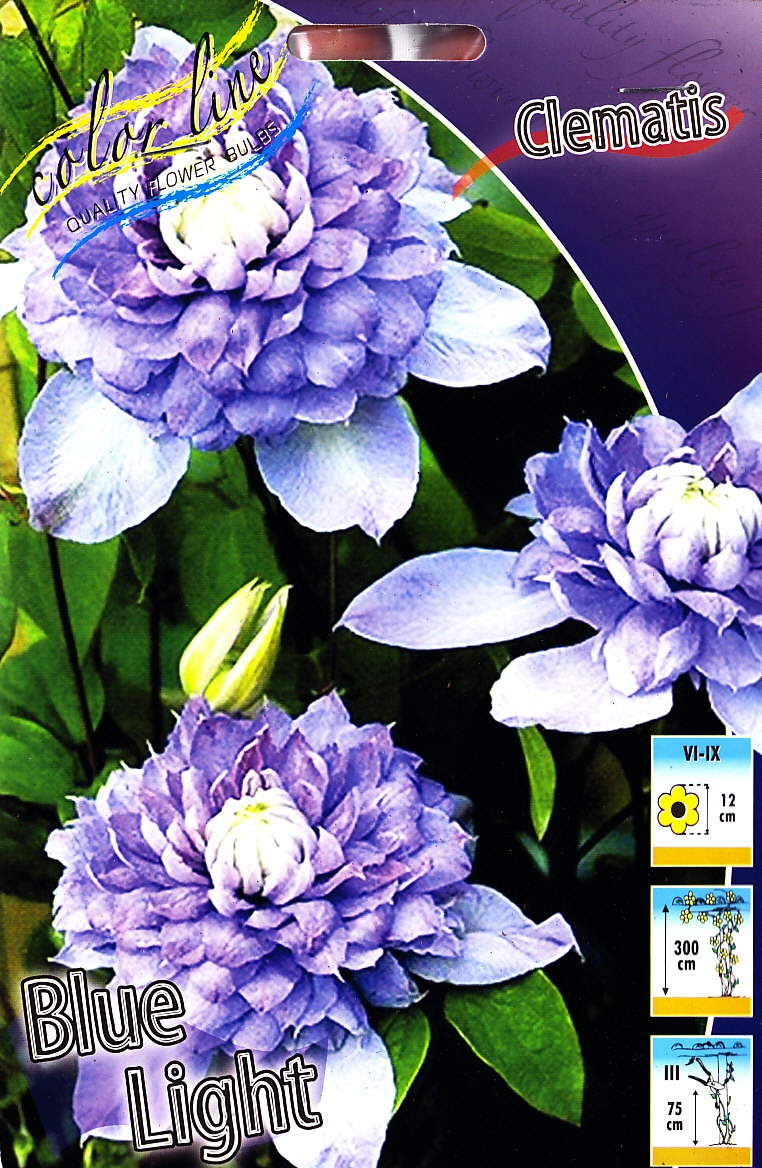 Клематис 'Blue Light' ('Блю Лайт') — это исключительно красивый, крупноцветковый, преимущественно махровый сорт голландской селекции, отличающийся обильным и продолжительным двухволновым цветением.