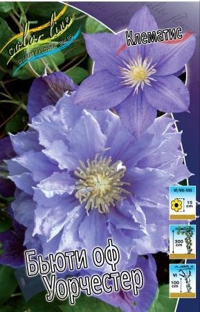 Клематис 'Beauty of Worcester' (Бьюти оф Уорчестер) — старинный английский сорт, ценящийся за яркие сине-фиолетовые махровые или полумахровые цветки и повторное обильное цветение в течение сезона.