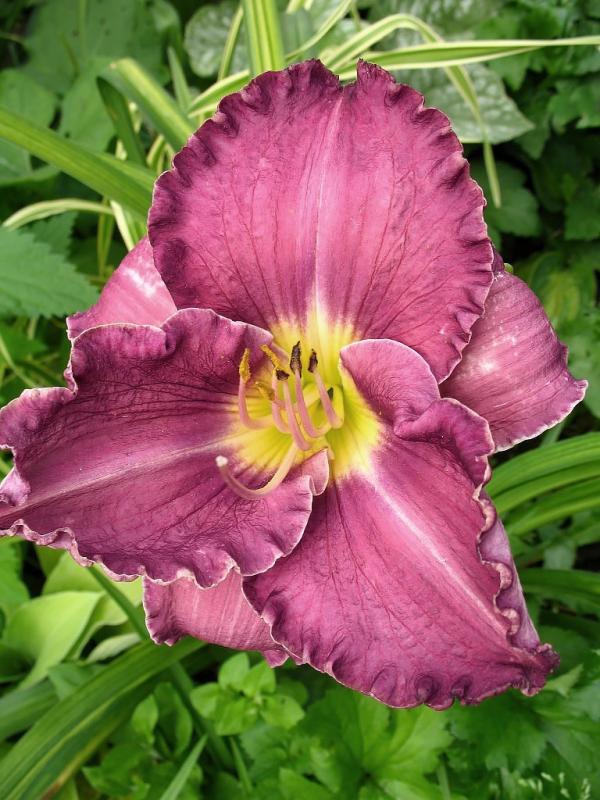 Лилейник гибридный Анчартеред Уотерс образует плотные травянистые кусты, над которыми возвышаются цветоносы с крупными лилиевидными цветками. Высота лилейника 60-70 сантиметров. Раскрытый цветок в поперечнике достигает 10-15 сантиметров. Цвет лепестков розово-лиловый с лимонно-зелёным горлом и тёмно-лавандовым гало. Края лепестков гофрированные. Период цветения июнь-август. По типу вегетации относится к полувечнозелёным лилейникам — в тёплом климате листва сохраняется вечнозелёной, в холодном почти полностью отмирает. Морозостойкость высокая. Можно использовать для декоративного озеленения, создания бордюров или групповых посадок. А также этот сорт прекрасно подходит для одиночных посадок или использования в альпинариях. Кроме того, его можно использовать для срезки цветков.