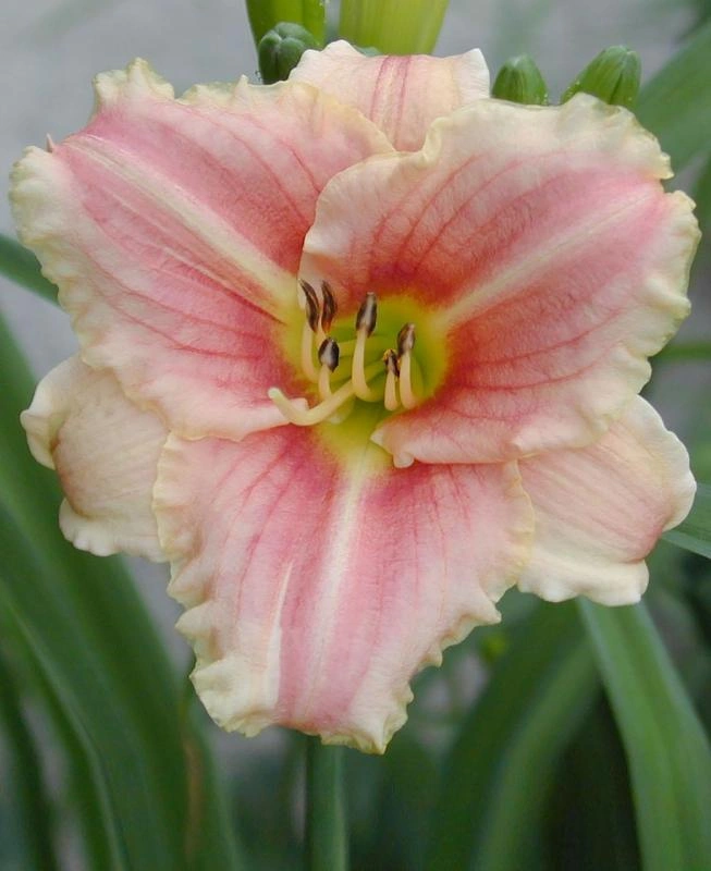Лилейник гибридный Литтл Анна Роза - корневищный травянистый многолетник с мочковатыми мясистыми корнями. Мечевидно изогнутые листья образуют плотные кусты. Высота растения — 35-40 см. Цветки по форме похожи на цветки лилий размером 6-8 см, чаще воронковидные, шестираздельные, с небольшой трубкой, собраны по 2-10 в раскидистые соцветия. Цветки нежно-розовые, лепестки с волнистым краем. Каждый цветок живет один день, но множество цветков на взрослом растении обеспечивают длительное цветение. Аромат нежный, сладковатый. Цветение приходится на июнь-июль. Лилейник один из самых неприхотливых многолетников, он зимостоек и засухоустойчив, прекрасно растёт на хорошо освещённых участках. Можно использовать для декоративного озеленения, создания бордюров или групповых посадок. А также прекрасно подходит для одиночных посадок или использования в альпинариях. Кроме того, его можно использовать для срезки цветков.
