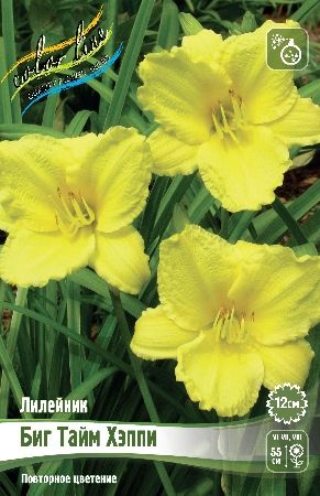 «Биг Тайм Хеппи» (Big Time Happy) — крупноцветковый, морозостойкий сорт лилейника. Высота 50-60 см.