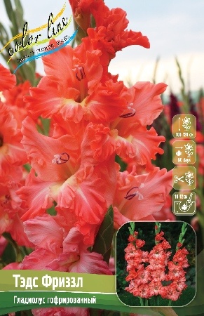 Гладиолус «Тэдс Фриззл» (Ted's Frizzle) — сорт с яркими розовыми цветами. Отличается интересной текстурой и формой лепестков: они с характерным гофрированием и рифлением, создающими эффектные соцветия.