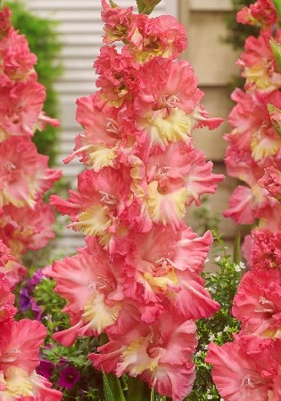 Гладиолус «Курск» — крупноцветковый, гофрированный сорт. Цветок красно-розовый с жёлтым пятном в центре. Растение высотой 90–100 см, стебель прямой и крепкий, листья узкие, линейные. В длину соцветие составляет 0,8 м. Цветение с июля по сентябрь. Подходит для срезки, отлично смотрится в цветниках, горшках и на клумбах. Требует выкапывания на зиму.