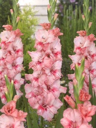 Гладиолус Адреналин-Главными преимуществами гладиолуса являются его крупные цветки со сложной формой лепестков и насыщенная розовая окраска. Растения подходят для групповых посадок или использования в букетах благодаря своей устойчивости после срезания.