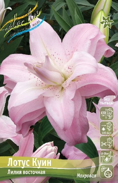 Лилия 'Лотус Куин' (Lilium Lotus Queen) — это восточный махровый сорт с крупными, многослойными цветками нежно-розового оттенка, напоминающими по форме цветы лотоса.
