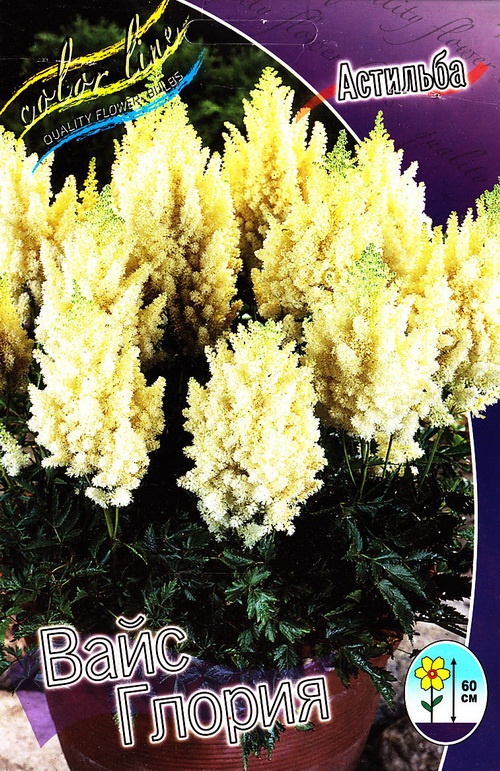 Астильба сорта 'Вайс Глория' (Astilbe 'Weiss Gloria') — это компактный многолетний кустарник из группы Арендса с пышными, плотными соцветиями чистого белого цвета, которые цветут в начале-середине лета.