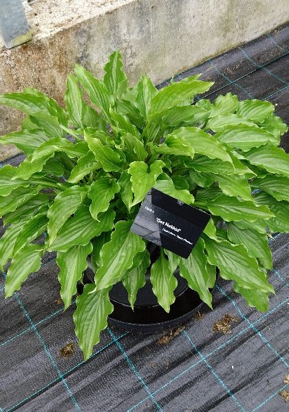 «Хоста Гет Неккид» (Get Nekkid) — гибридный сорт. Листья: изумрудно-серебристые, глянцевые, с волнистым краем.
