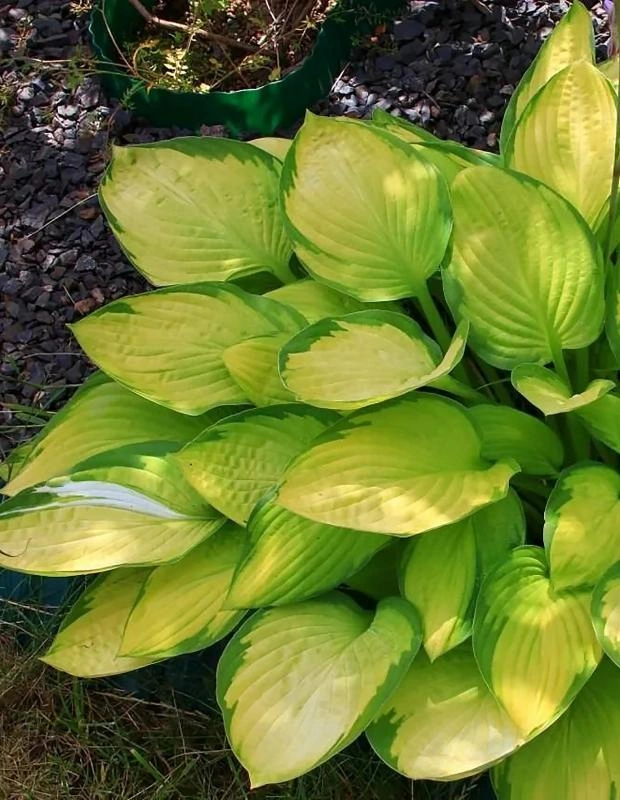 Хоста Голд Стандарт — многолетнее травянистое растение семейства лилейные. Куст плотный, пышный, до 60 см в высоту и 100 см в диаметре. Листья сердцевидной формы, заостренные, насыщенного зелёного цвета с ярким бело–жёлтым центром. Лист плотный, меняет окраску в течение сезона, 25х15 см. На прямых цветоносах распускаются воронкообразные цветки белого цвета. Цветение с середины июля и до конца августа. Высаживать рекомендуется в полутени, в защищённом от ветра месте. Предпочитает влажные, слабокислые, хорошо дренированные почвы. Используют для оформления бордюров или в качестве компаньона в групповой посадке. Реже используют в одиночных посадках. Хоста зимует без укрытия, хорошо переносит морозы.