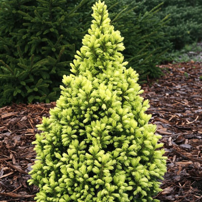 Стройное хвойное дерево с плотной узкоконической кроной.