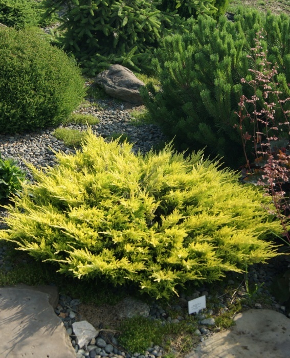 Хвоя: мелкая, чешуйчатая, мягкая, короткая, густо-расположенная, желто-зеленая.