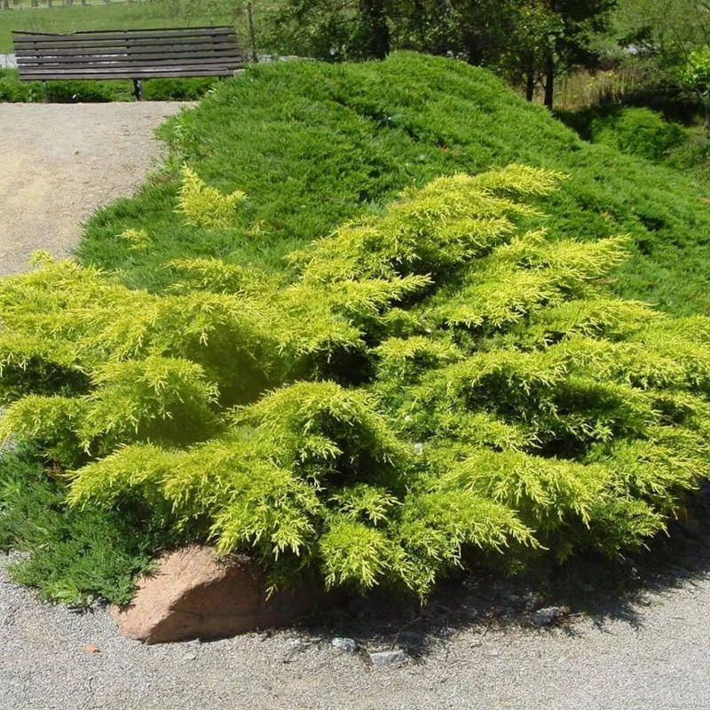 Можжевельник средний «Old Gold» — компактный вечнозелёный медленнорастущий кустарник с неравномерно раскидистыми густыми ветвями. Побеги слегка приподнимаются, крона почти горизонтальная.