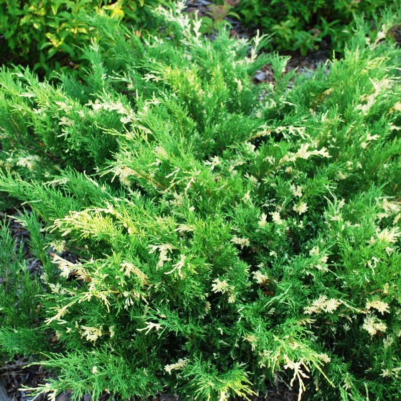 Можжевельник средний 'White Splash' — это раскидистый хвойный кустарник, отличающийся уникальной голубовато-салатово-зеленой хвоей с яркими кремово-белыми вкраплениями. Он является гибридом казацкого и китайского можжевельников и ценится в ландшафтном дизайне за свою необычную окраску и форму кроны.