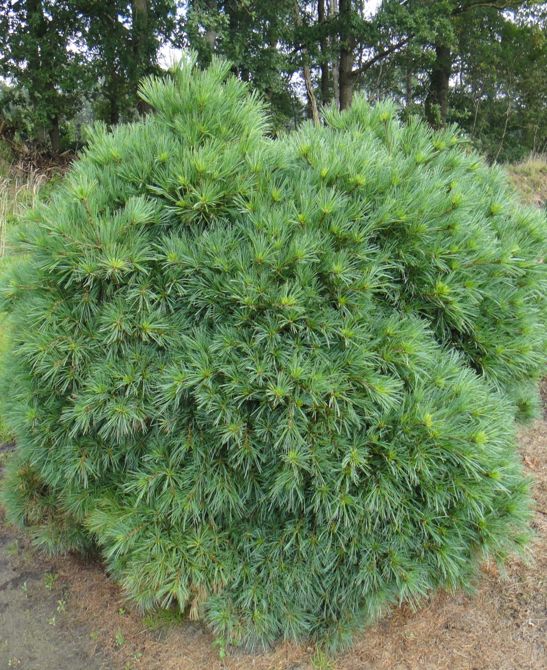 Хвоя: молодой прирост светло-зелёный, затем он становится более тёмным, а осенью хвоинки окрашены в серебристо-голубовато-зелёный цвет, 8-10 см.