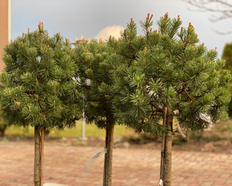 «Мопс» (Pinus mugo «Mops») — карликовое вечнозелёное растение с плотной шаровидной кроной, может расти на штамбе.
