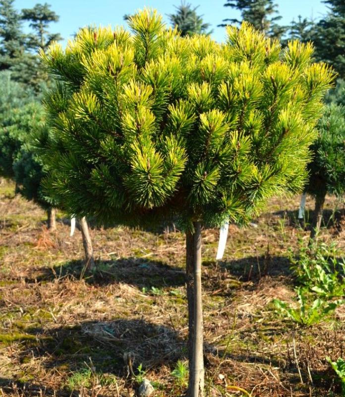 Сосна горная «Офир» на штамбе (Pinus mugo Ophir) — карликовый сорт, выведенный голландскими селекционерами. Крона — округлая, медленно растущая до компактных размеров. В первые 10 лет вырастает до 50 см в высоту, в возрасте 20 лет — до 80 см в высоту и 100 см в диаметре. В более зрелом возрасте крона может принимать форму широкого конуса или кегли.
