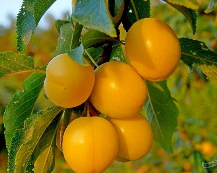 Плоды: крупные (35–50 г), округлой формы. Кожица плотная, ярко-желтая, иногда с легким румянцем. Мякоть желтая, сочная, ароматная, с приятным кисло-сладким вкусом (оценка — 4,5 балла).