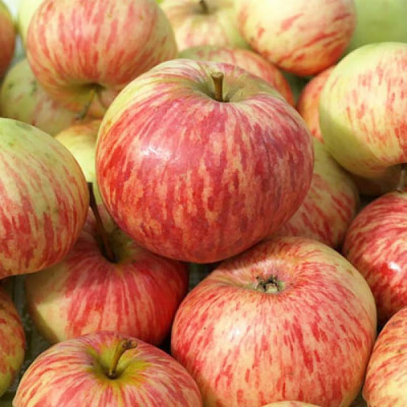 Плоды средней или нижесредней величины 70-100 гр., сильно уплощенной реповидной формы, без ребер или с небольшими долями. Основная окраска зеленоватая при съеме и желтая в момент потребительской зрелости. Покровная окраска в виде темно-красных резко очерченных полос и крапин по слабовыраженному красноватому фону с солнечной стороны.