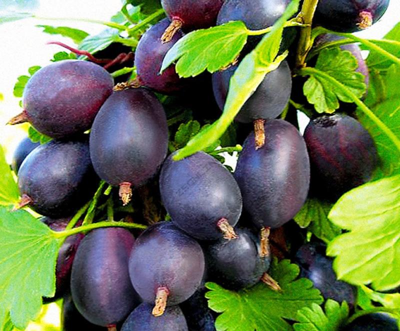 Кусты восотой до 1,5м., их способности к росту и степень раскидистости оценивают как средние, густота ветвления тоже не чрезмерная, ветви направлены наклонно. Шиповатость слабая, редкая, колючки одинарные, направлены прямо. Молодые растущие побеги у этого кустарника более толстые, светло-зеленые, без опушения, взрослые одревесневшие – светлые, тоньше в диаметре.Главным достоинством Черносливового крыжовника считаются его плоды. Ягоды 4гр. овальной или грушевидной формы, с плотной кожицей, покрытой восковым налетом. Окраска зависит от стадии спелости. Молодые ягоды темно-красные, полностью зрелые – черные. Слабые прожилки можно рассмотреть только в незрелых плодах.Крыжовник Черносливовый имеет специфический приятный аромат и кисло-сладкий вкус. В нем явственно доминирует сладость. Ягоды с сочной нежной мякотью с привкусом сливы.Сорт среднеранний, с нестабильной периодичностью созревания. Высокосамоплодный.