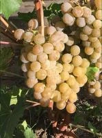 Сорт отличается сильнорослыми кустами, на которых в период цветения появляются цветки как женского, так и мужского пола. Грозди средней величины, цилиндроконические, умеренной плотности. Средняя масса грозди 150 грамм. Ягоды белые, округлые, средние, 14-16 мм, средняя масса 4 г. Мякоть мясисто-сочная, с приятным медово-мускатным ароматом. Цвет ягод янтарно-белый с розовым отливом. Сахаристость 21-25%, кислотность 6,5-7,5%.