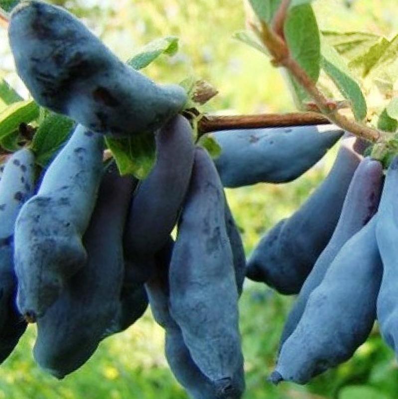 Ягоды: Крупные, весом в среднем 1,1 г (максимально до 3 г). Форма удлиненно-веретеновидная, поверхность неровная («бугристая»), кожица сине-голубая с сильным восковым налетом.