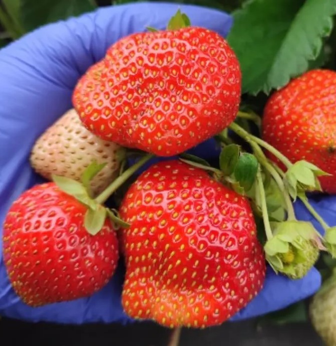 Ягоды среднего и крупного размера, 25–30 г, с приятным, малиново-земляничным вкусом, насыщенным ароматом и упругой мякотью. Кожица блестящая, красно-оранжевого цвета.