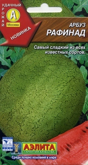 Среднеранний высокоурожайный сорт с изумительными вкусовыми качествами и красивым внешним видом. Подходит для выращивания в открытом грунте и под временными пленочными укрытиями. Первый урожай снимают на 78-80 день после всходов. Растения мощные. Плоды в основном имеют массу 4-5 кг, отдельные вырастают до 7 кг. Кожура тонкая, достаточно плотная. Мякоть ярко-красная, сочная, сахаристая, с небольшим количеством семян. Плоды отлично поддаются транспортировке и хранению до месяца.