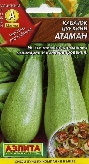 Высокоурожайный раннеспелый сорт (период от всходов до начала плодоношения 48-50 дней). Растение имеет кустовую форму, образует цилиндрические плоды, длиной 18-20 см, светло-зеленые с белой пятнистостью, глянцевые. Мякоть - светлая, хрустящая, очень сладкая и сочная. Плоды отлично перевозятся и хранятся, используются для кулинарии и консервирования, являются прекрасным диетическим продуктом.