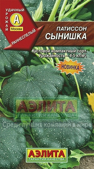 Новый зеленоплодный сорт. Раннеспелый, плодоносит спустя 45 дней от всходов. Формирует кустовые растения компактного габитуса. Плоды дисковидные, с фестончатым краем, в биологической спелости массой 300-350 г. В пищу используются молодые завязи диаметром 5-8 см. Мякоть молодых патиссончиков нежная, хрустящая, сочная, с богатым витаминно-минеральным комплексом. Высокое содержание