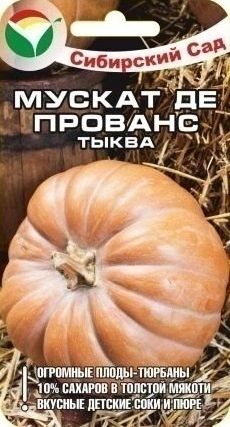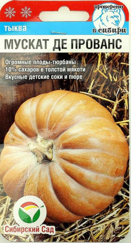 Красивые плоды-тюрбаны, 10% сахаров в толстой мякоти, вкусные детские соки и пюре. Среднеспелый крупноплодный сорт французской селекции с идеальным сочетанием вкусовых и товарных качеств. Сорт среднеплетистый, формирует плоскоокруглые дольчатые плоды, массой до 10 кг. Мякоть без острого тыквенного запаха, оранжевая, толстая.
