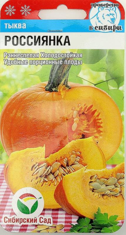Холодостойкий, раннеспелый сорт отечественной селекции. Первые плоды созревают на 90-100 день после появления от всходов. Характеризуется хорошей урожайностью, удобным «порционным» размером плодов, лежкостью и устойчивостью к экстремальным условиям. Растение среднеплетистое, с 3-4 боковыми побегами. Длина главной плети 2-3 м. Плоды округлые, массой 1,5-2,5 кг. Мякоть ярко-оранжевого цвета, нежная, не волокнистая, сладкая, с легким дынным ароматом, толщиной 4-6 см. С одного растения можно получить до 20 кг плодов. Транспортабельность и лежкоспособность высокие.