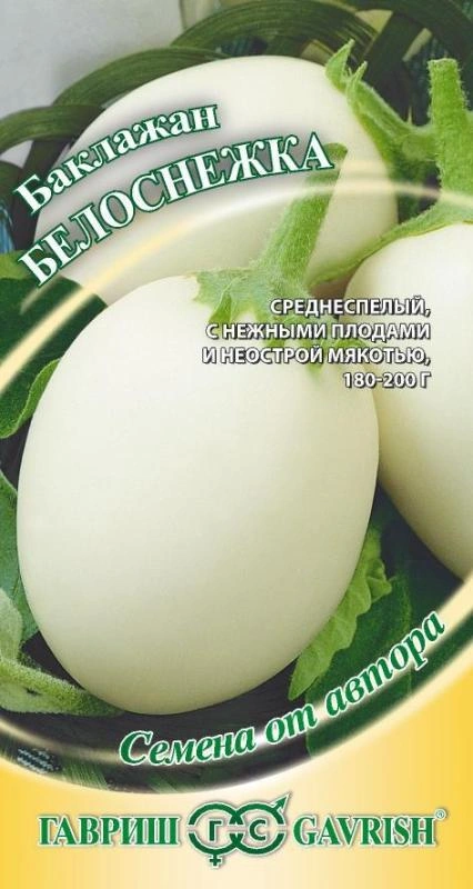Среднерослый (до 1 м в теплицах) сорт с аппетитными овальными плодами массой 180-200 г. Созревает через 110-115 дней, меняя свою окраску с белой на желтую. Мякоть плотная, белая, абсолютно без горечи. Один из лучших сортов для запекания с томатами и приготовления икры. Рекомендуется для выращивания в открытом грунте (с подвязкой к кольям) и в теплицах.