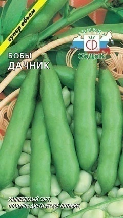 Раннеспелый, высокопродуктивный сорт. Растения высокие, до 1м и более, цветки белые, бобы длинные 15-17 см, с толстыми мясистыми створками и крупными белыми зернами. Вкусовые и технологические качества великолепные. Используют в домашней кулинарии, консервировании и заморозке. Рекомендуется для диетического и детского питания. Бобы сверхнеприхотливы, выращиваются на любых почвах, при любых погодных условиях. Посадки бобов отпугивают колорадских жуков и кротов.