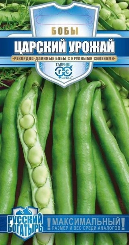 Среднеранний (от всходов до созревания 72-90 дней) высокопродуктивный сорт. Растение прямостоячее, высотой 90 см. Бобы мясистые, очень длинные (35 см), широкие, с рекордным количеством крупных семян — 8 шт! Отличается равномерным созреванием и отличными вкусовыми качествами. Рекомендуется для употребления в свежем виде или переработки. Бобы предпочитают влажные, торфянисто-болотные и тяжелые глинистые почвы. Посев в открытый грунт проводится в конце апреля – начале мая, на глубину 5 см. Схема посева 20x60 см. Растение нуждается в опоре.