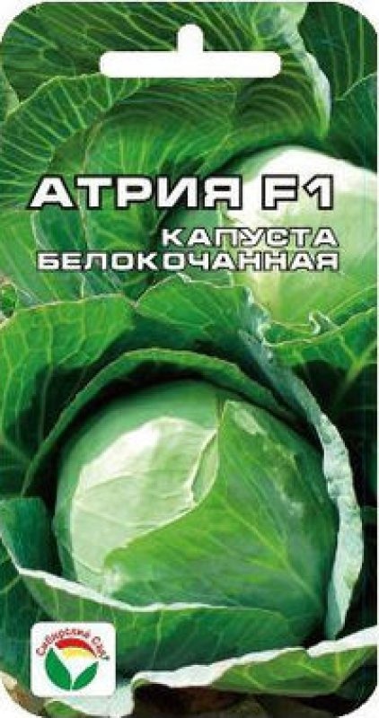 Очень популярный в России высокоурожайный гибрид голландской селекции. Характеризуется оптимальной комбинацией урожайности, товарности и вкусовых качеств. Созревает через 115-120 дней после высадки рассады в открытый грунт. Кочан крупный, ровный, с короткой кочерыгой, темно-серо-зеленого цвета, устойчивый к растрескиванию. Внутренняя структура высокого качества, плотность выше средней. Вес кочанов в среднем 4-8 кг, иногда до 10 кг. Вкусовые качества в свежем виде хорошие и отличные. Сочные и нежные внутренние листья делают Атрию F1 незаменимой для квашения. Гибрид рекомендуется для употребления в свежем виде, переработки и длительного зимнего хранения в течение 6 месяцев. Посев семян на рассаду: апрель - первая декада мая. При высадке растения заглубляются до 1 настоящего листа. Для получения высокого урожая сочетают умеренное орошение и систематическое рыхление почвы.