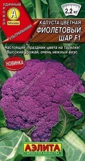 Яркие головки с очень нежным вкусом. Гибрид урожайный и неприхотливый, созревает спустя 80-82 дня после высадки рассады. Соцветия фиолетовые, выровненные, плотные, массой 1,8-2,2 кг. Частично укрыты от солнечных лучей. Растения мощные, с вертикальной розеткой листьев и хорошо развитой корневой системой. Головки содержат повышенное количество антоцианов – веществ, предотвращающих болезни сердца и кровеносной системы. Во время приготовления на пару или в кляре соцветия почти не теряют окраску; при варке лучше добавить в воду немного лимонной кислоты. Пригодны для заморозки. Урожайность 7-9 кг/м2 .