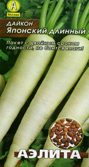 Раннеспелый сорт – от появления всходов до технической спелости корнеплода проходит 50-60 дней. Корнеплоды гладкие, с белой кожурой, длиной 30-60 см. Погружены в почву на 1/3-1/2 длины. Мякоть очень сочная, нежная, белая. Сладковатого, освежающего вкуса – без резкого редечного привкуса. Масса «белоснежной сосульки» может превышать 1 кг. Но не стоит гнаться за большими размерами: у более мелких плодов (до 40 см) вкусовые качества выше. Самая сладкая часть корнеплода в середине. Мякоть дайкона хорошо сочетается в салатах с разными свежими овощами и фруктами. Урожайность 10-12 кг/м2 .