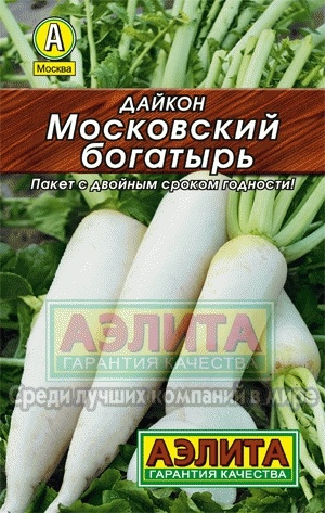 Крупноплодный отечественный сорт. Среднеспелый, формирует урожай за 80-85 дней от всходов. Длина корнеплода 75-80 см, диаметр 6-9 см, масса 1-1,5 кг. Мякоть сочная, белая без горечи. Продукт низкокалорийный, 100 г сырой мякоти содержит всего 21 ккал. Корнеплод погружен в почву на 1/3 длины и легко выдергивается при уборке. Пригоден для длительного хранения. Урожайность 16-17 кг/м2.