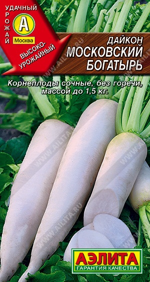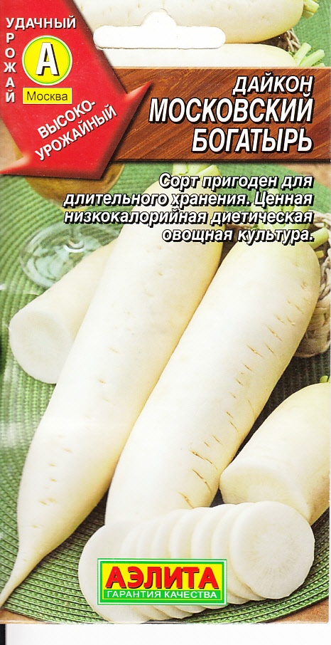 Крупноплодный отечественный сорт. Среднеспелый, формирует урожай за 80-85 дней от всходов. Длина корнеплода 75-80 см, диаметр 6-9 см, масса 1-1,5 кг. Мякоть сочная, белая без горечи. Продукт низкокалорийный, 100 г сырой мякоти содержит всего 21 ккал. Корнеплод погружен в почву на 1/3 длины и легко выдергивается при уборке. Пригоден для длительного хранения. Урожайность 16-17 кг/м2.
