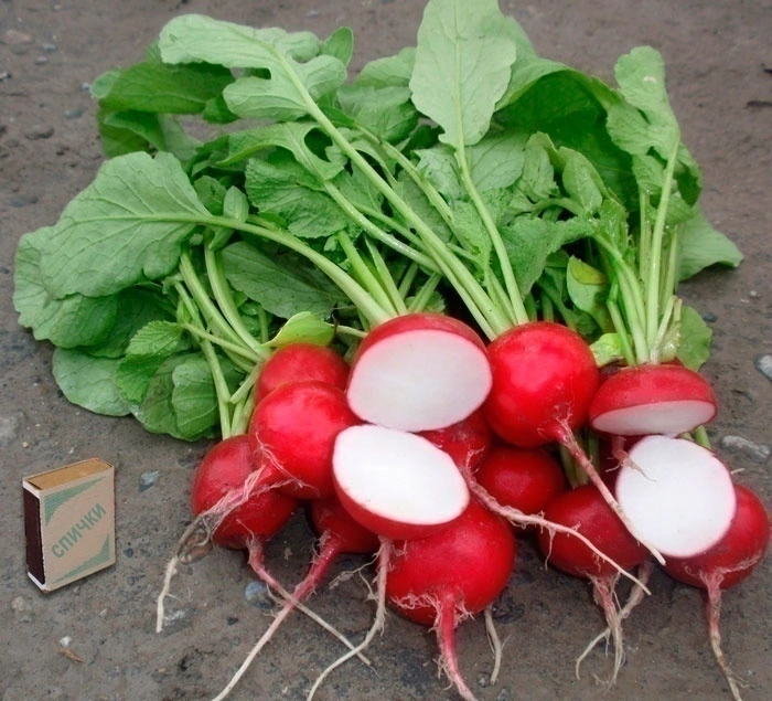 Раннеспелый. Розетка листьев полупрямостоячая. Лист обратнояйцевидный, желтовато-зеленый. Черешок со слабой антоциановой окраской. Корнеплод округлый, красный, головка выпуклая. Мякоть белая, нежная, сочная. Масса корнеплода 18-23 г. Вкусовые качества хорошие. Урожайность 2,0-2,5 кг/кв.м.