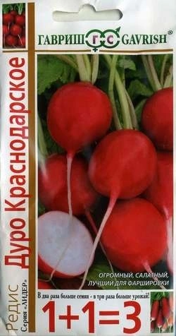 Среднеспелый (25-30 дней от всходов до технической спелости) сорт. Корнеплод округлой формы, красного цвета. Мякоть белая, сочная, очень сладкая. Очень вкусный. Масса корнеплода 30-40 г. Рекомендуется для выращивания в открытом и защищенном грунте. Относительно устойчив к болезням. Посев в грунт производится в конце апреля - начале мая на глубину 1 см по схеме 5-7x15 см. Используется для посева в ранние сроки. Урожайность 3,2 - 3,4 кг/м2.