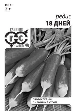 Скороспелый (18-20 дней от всходов до технической спелости), урожайный сорт. Корнеплод удлиненно-цилиндрический с розово-красной верхней частью и белым кончиком. Мякоть белая, плотная, слабоострая. Масса товарного корнеплода 17-25 г. Ценность сорта: скороспелость, дружное формирование корнеплодов, высокий выход товарной продукции и отличные вкусовые качества. Выращивают прямым посевом в открытый грунт. Посев проводят в конце апреля–начале мая на глубину 1 см по схеме 5-7x15 см. Повторные посевы в середине июля позволяют получить еще больший урожай в августе-сентябре.