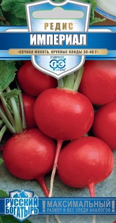 Редис — один из первых весенних плодов, которые появляются в нашем меню после долгой зимы. Это сочный, приятный на вид плод со сладковатой остротой, богат клетчаткой и витаминами. Сорт среднеспелый, через 25-30 дней можно собирать первый урожай очень крупных корнеплодов. Красные плоды имеют округлую форму диаметром 8-10 см и массой 30-40 г, с белой, хрустящей мякотью. Вкусовые качества отменные. Используют в свежем виде: нарезке, салатах, окрошке. Из редиски готовят закуски, бутерброды. Сорт относительно устойчив к болезням. Посев в грунт проводится в конце апреля-начале мая, июле на глубину 1 см по схеме 5-7x15 см. Урожайность 3,2-3,4 кг/м2.