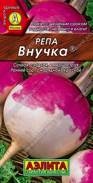 Раннеспелый сорт (от всходов до технической спелости 45-50 дней), с дружным формированием урожая. Корнеплоды массой 150-300 г, с красивой гладкой кожицей фиолетово-красной окраски. Мякоть белая, плотная, сочная, сладкая и в меру острая, ароматная. Корнеплоды хорошо хранятся в осенне-зимний период. Урожайность 4-5 кг/м2. Для летнего потребления посев проводят рано весной, для осенне-зимнего – в середине июля.
