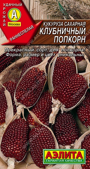 Редкий сорт кукурузы, признанный одним из лучших для изготовления попкорна. По срокам созревания раннеспелый, от всходов до начала уборки початков 81-90 дней. Растения высотой 1,2-1,7 м, весьма декоративны и подходят даже для небольшого сада или крупных контейнеров. Початки длиной до 8 см, по форме и цвету похожи на ягоды крупной земляники. Убирают их в стадии полной зрелости, после чего досушивают. Сорт неприхотливый, быстро и с успехом растет в средней полосе. Срезанные стебли с початками могут долгое время украшать интерьер, а потом, при необходимости, зерна из них можно использовать по прямому назначению.